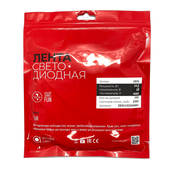 Светодиодная лента ALFA 19,2w/192 точек/4000K/2300лм (24v)