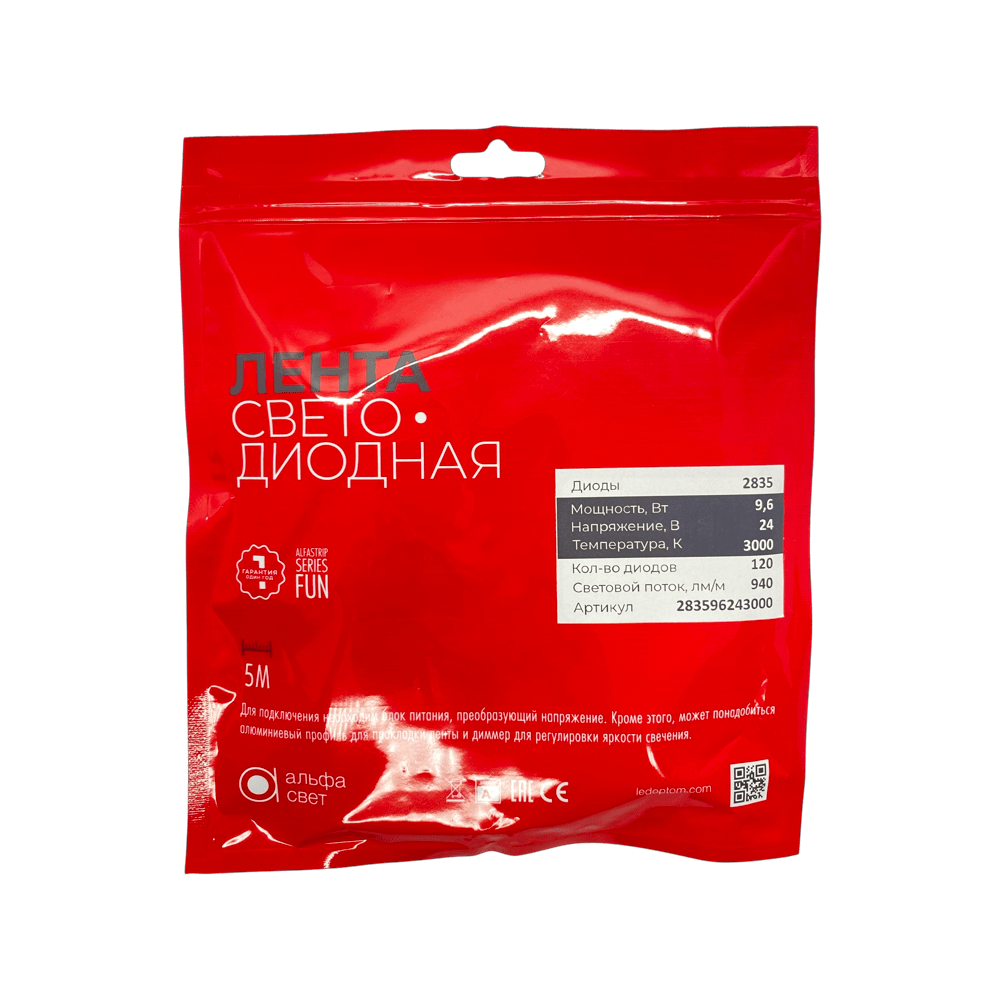 Светодиодная лента ALFA 9.6w/120 точек/3000K/940лм (24v)