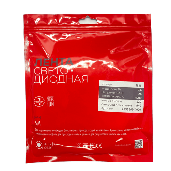 Светодиодная лента ALFA 9.6w/120 точек/4000K/940лм (24v)