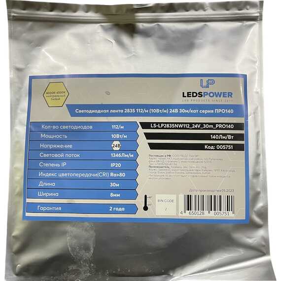 Светодиодная лента LEDS POWER (серия ПРО140), 24В, IP20, 112 LED/m, нейтральный белый.