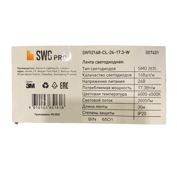 Светодиодная лента SWG PRO 17,3w/168 точек/6000-6500К (24v)