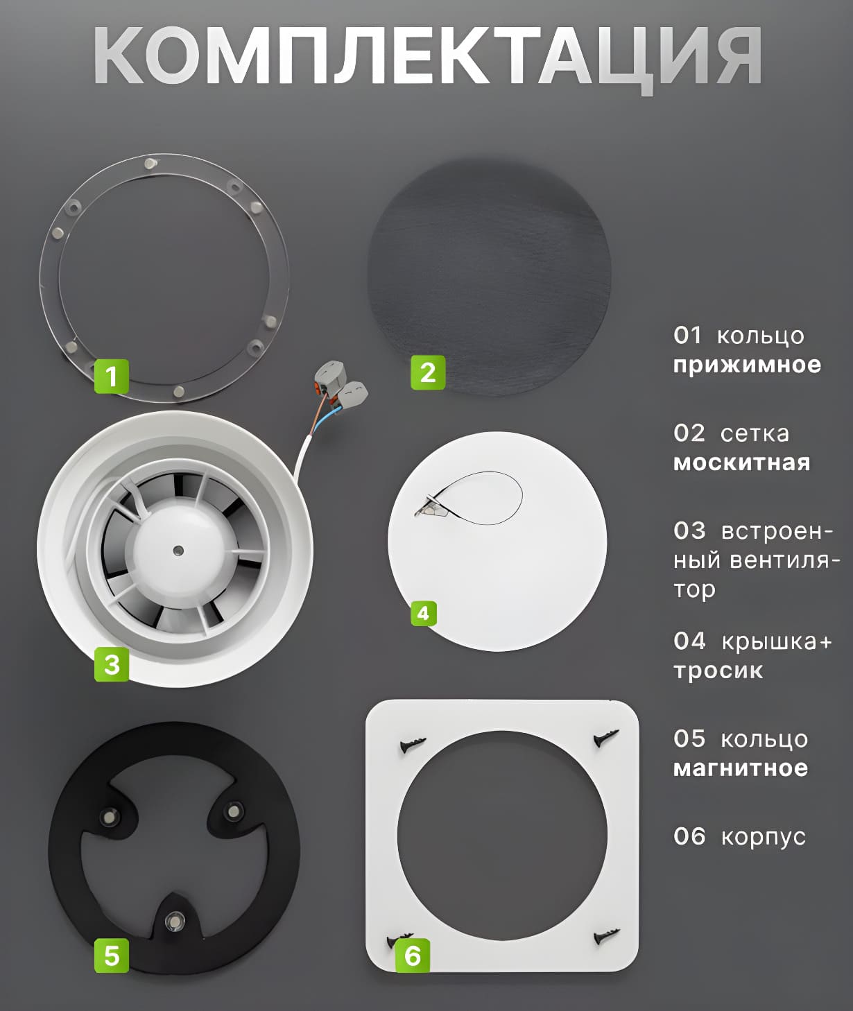 Вентиляционная магнитная решетка с вентилятором 100/125 мм — эффективное решение для улучшения микроклимата в квартире и доме. Легко устанавливается на потолке благодаря магнитной системе. Компактная и эстетичная, подходит для систем вытяжки и притока воздуха, легко чистится и обслуживается. Решетка выполнена из пластика с металлическими элементами и мощным магнитом, защищает от пыли, грязи и насекомых. Можно окрашивать в цвет натяжного потолка. Подходит для установки в воздуховоды диаметром 100 или 125 мм, идеально подходит для ванной, кухни, спальни и других помещений. Мощность — 14 Вт, производительность — 107 м³/ч, уровень шума — 35 дБ. Обеспечивает свежий воздух и комфорт в помещении.