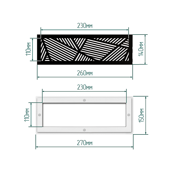 Магнитная вент. решетка ПРЯМОУГОЛЬНАЯ П01 (230*110мм) ЧЕРНАЯ
