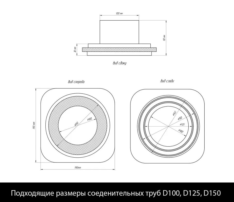 Магнитная вент. решетка с теневым контуром и вентилятором -D150