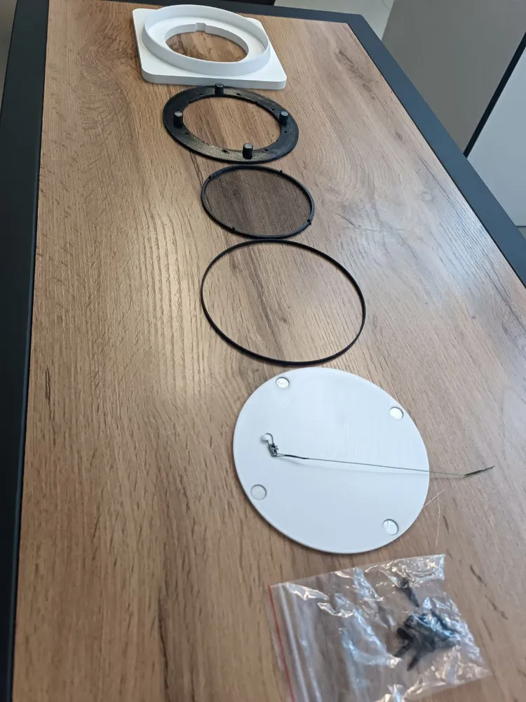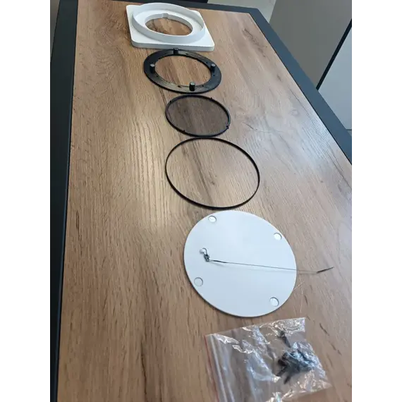 Теневая вытяжка без клапана по системе пяльцы имеет крышку, которая обтягивается полотном натяжного потолка. Тем самым, крышка теневой вытяжки становится одного цвета, что и натяжной потолок. Что очень удобно, особенно при натяжке цветного потолка. Так же имеет съемную сетку, которая предотвращает попадание насекомых