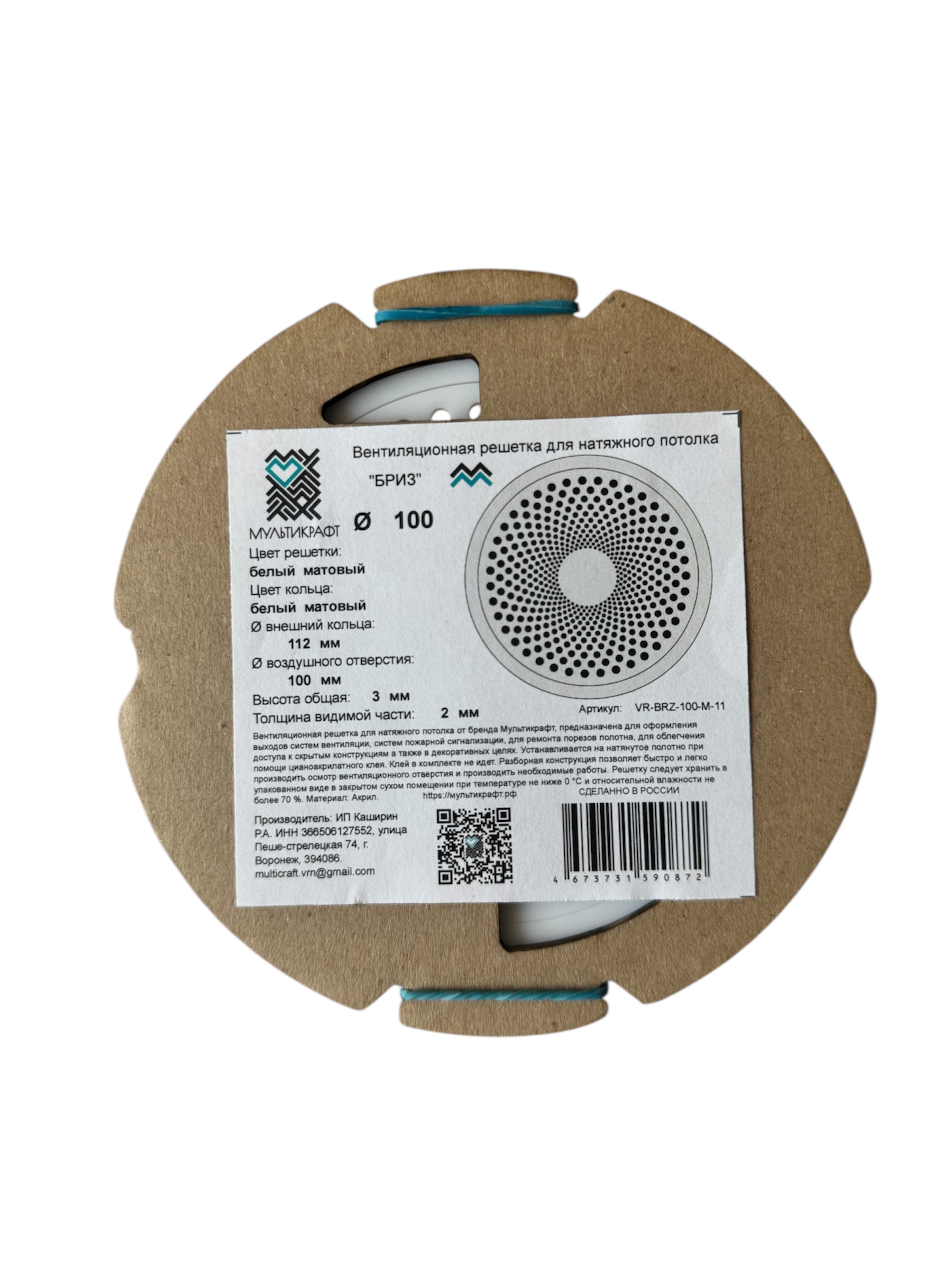 Вентиляционная решетка ф100 (БЕЛ/МАТ) МУЛЬТИКРАФТ