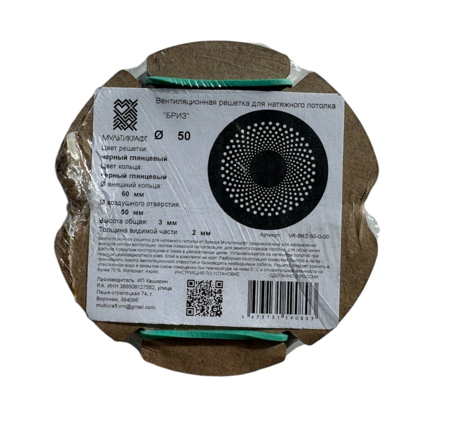 Вентиляционная решетка ф50 (ЧЕРН/ГЛЯНЕЦ) МУЛЬТИКРАФТ