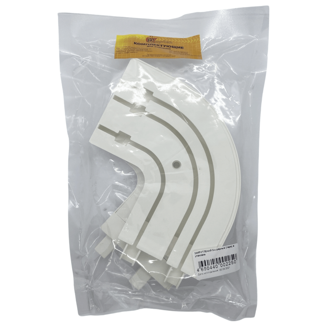 Соединитель поворотный трехрядный является готовым решением для карнизов с пластиковой шиной. Это поворотный элемент, который позволяет создать пластиковую шину с круглыми боковинами или эркером. Изготовлен из белого пластика.